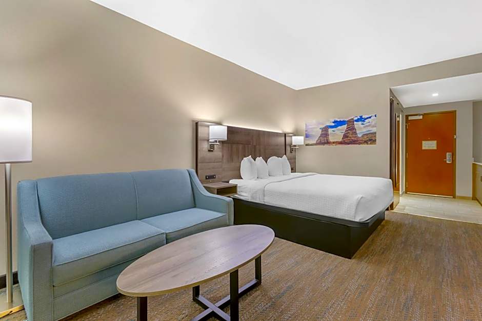 SUITE-1 KING BED,NSMK,SEPBDR,WHRPL,PATIO,SOFBD,KITETT,FULL BREAKFAST is 280 square feet and includes a king-size bed 150-183 width plus a sofa bed.